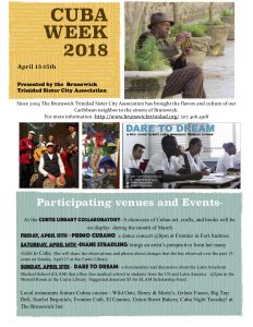 The Brunswick Trinidad Sister City association (BTSCA) is pleased to present its 16th annual Cuba Week.  BTSCA is a non profit organization that promotes constructive and creative non-political interactions with the people of our sister community in Trinidad, Cuba. Cuba Week is sponsored annually in Brunswick celebrating the diverse cultures and common ground with the people of Cuba.